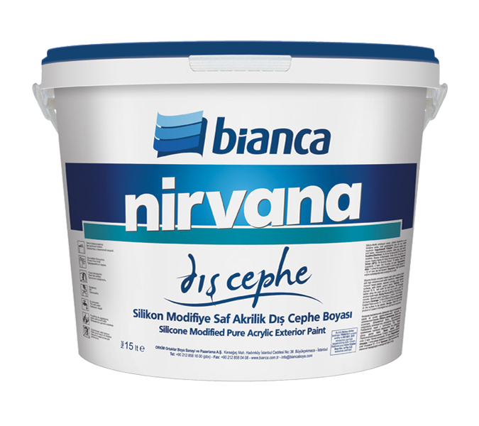 Bianca Nirvana Saf Akrilik Dış Cephe Boyası uygulaması yapılacak yüzeyler; her türlü kir, yağ ve tozdan, eski boya kalıntılarından arındırılmış temiz ve kuru olmalıdır. Yüzeydeki pürüzler raspa yapılarak temizlenmelidir. Çatlaklar akrilik esaslı macun ile tamir edilmelidir. Bianca Nirvana Saf Akrilik Dış Cephe Boyası uygulaması öncesinde Bianca Nirvana Saf Akrilik Dış Cephe Astarı uygulanmalıdır. Astar kuruduktan sonra Bianca Nirvana Saf Akrilik Dış Cephe Boyası fırça veya rulo ile yüzeye tam ve eşit nüfuz edecek şekilde iki kat uygulanır. Uygulama sırasında yüzey ve ortam sıcaklığının en az +5°C ve en çok +30°C arasında olmasına dikkat edilmelidir. Yüzey hazırlığı tamamlandıktan sonra Uygulama ortamında aşırı rüzgar ve hava akımı olmamalıdır.